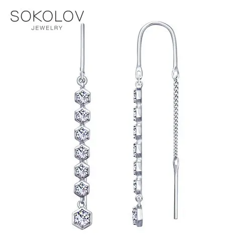Серьги-цепочки SOKOLOV из серебра с фианитами, Серебро, 925, Женски...