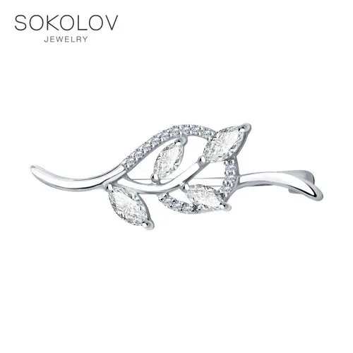 Брошь SOKOLOV из серебра с фианитами, Серебро, 925, Оригинальная продукция