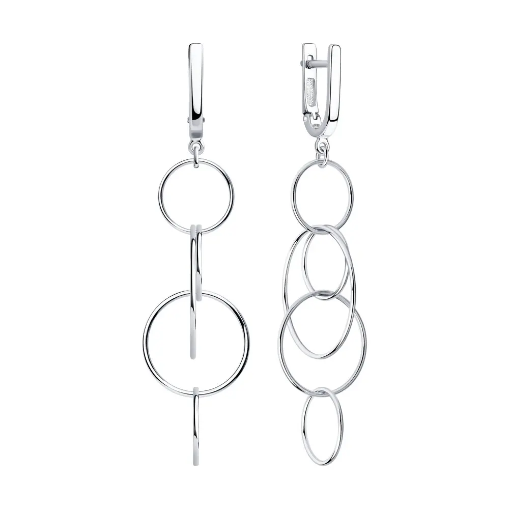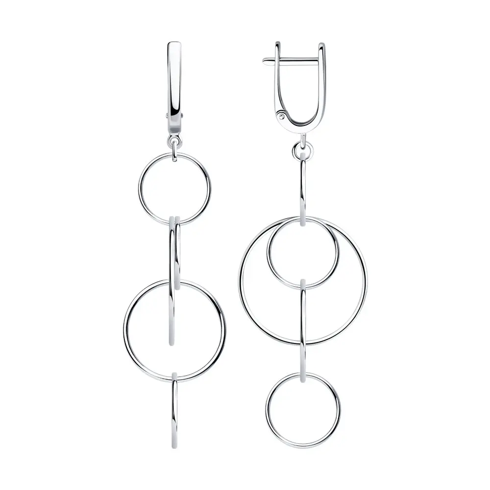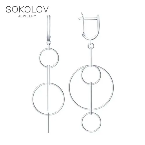 Серьги SOKOLOV из серебраОригинальные серьги из серебра понравятся любительницам удлинённых моделей с подвижными элементами. Здесь очевидно влияние тренда на минимализм и геометрию. Дизайнеры поиграли с размером и креплением круглых элементов, создав ультрамодное украшение в стиле chic casual. Несмотря на типичную для вечерних моделей длину и форму, серьги легко вписываются в будничные образы. Акцентный аксессуар, дополняющий однотонные блузы, платья или образ в стиле тотал деним.