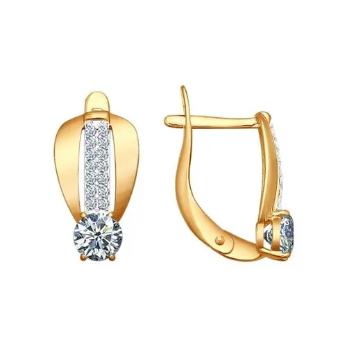 Серьги SOKOLOV из золочёного серебра с фианитами, Серебро, 925, Женские, Серьги 2022 тренд, Оригинальная продукция