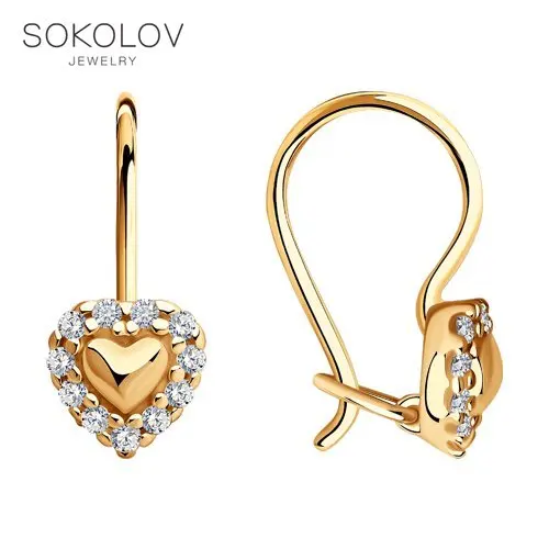 Серьги SOKOLOV из золочёного серебра с фианитами, Серебро, 925, Детские, Серьги 2022 тренд, Оригинальная продукция