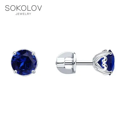 Пусеты SOKOLOV из серебра с синими корундами, Серебро, 925, Женские, Серьги 2022 тренд, Оригинальная продукция