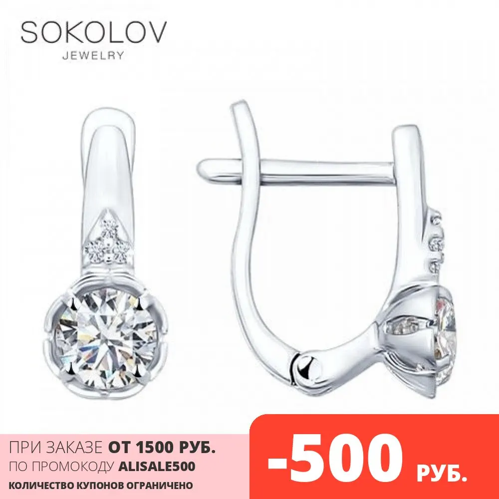 Серьги SOKOLOV из серебра с фианитами, Серебро, 925, Женские, Серьги 2022 тренд, Оригинальная продукция