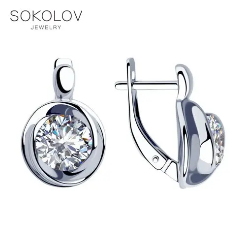 Серьги SOKOLOV из серебра с фианитами, Серебро, 925, Женские, Серьг...