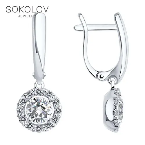 Серьги SOKOLOV из серебра с фианитами, Серебро, 925, Женские, Серьги 2022 тренд, Оригинальная продукция