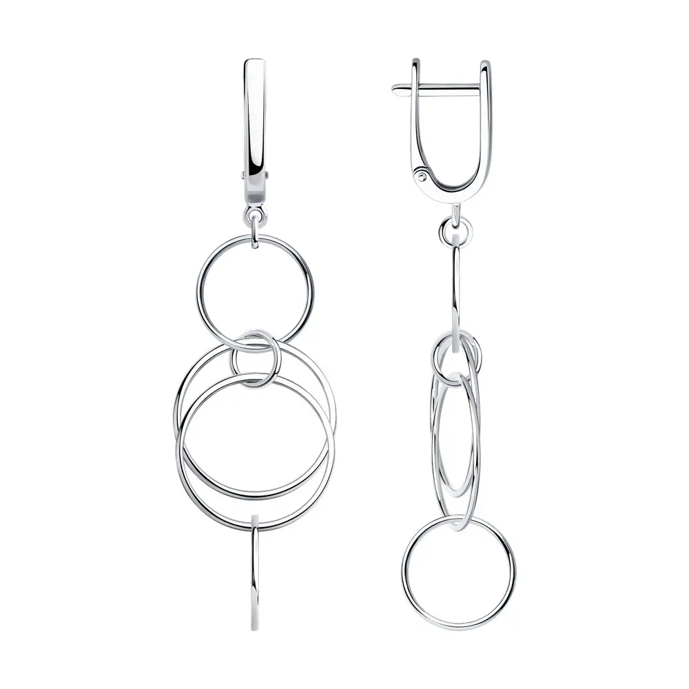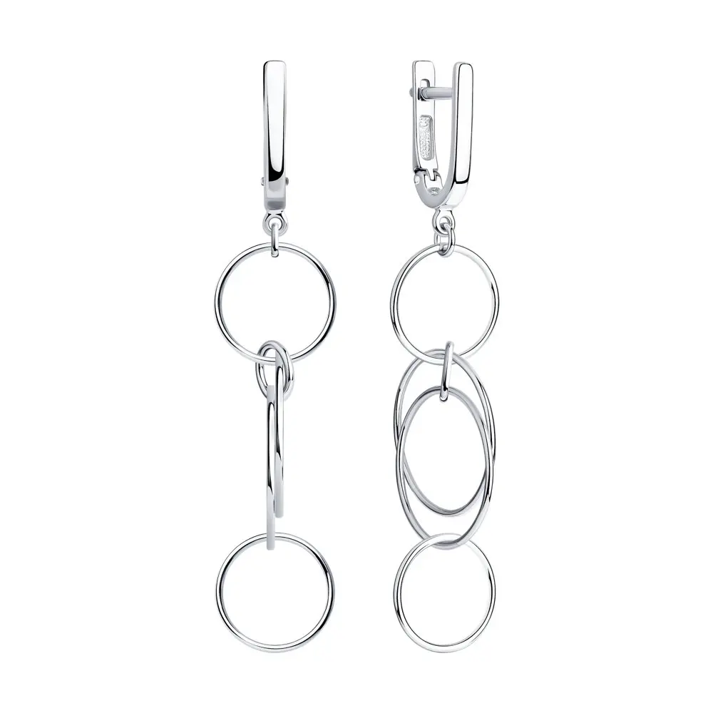 Серьги SOKOLOV из серебраОригинальные серьги из серебра понравятся любительницам удлинённых моделей с подвижными элементами. Здесь очевидно влияние тренда на минимализм и геометрию. Дизайнеры поиграли с размером и креплением круглых элементов, создав ультрамодное украшение в стиле chic casual. Несмотря на типичную для вечерних моделей длину и форму, серьги легко вписываются в будничные образы. Акцентный аксессуар, дополняющий однотонные блузы, платья или образ в стиле тотал деним.