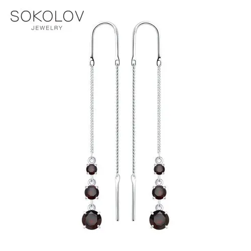 Серьги SOKOLOV из серебра с гранатами, Серебро, 925, Женские, Серьги 2022 тренд, Оригинальная продукция