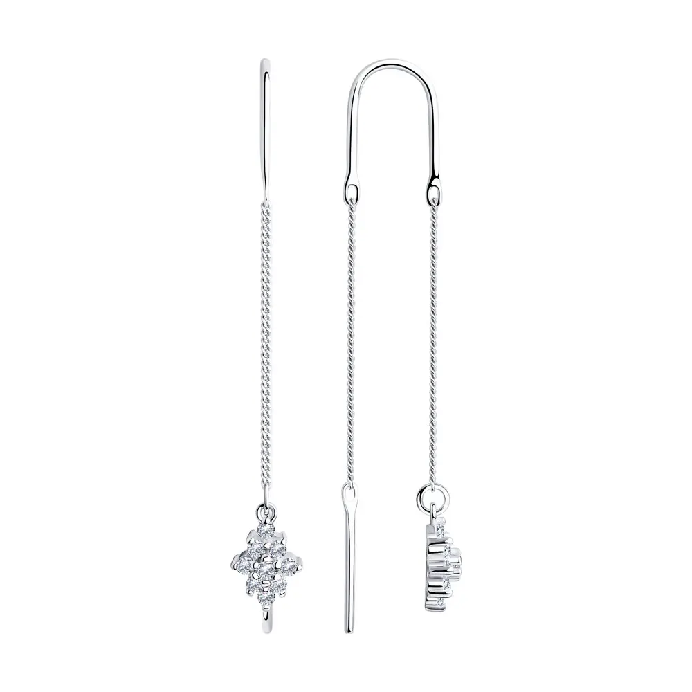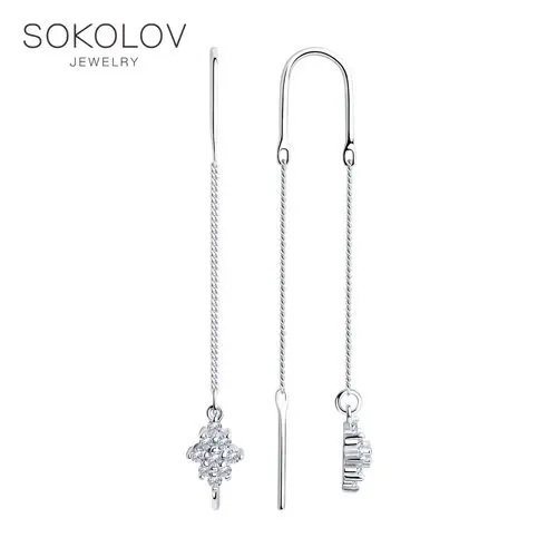 Серьги-цепочки SOKOLOV из серебра с фианитами, Серебро, 925, Женски...