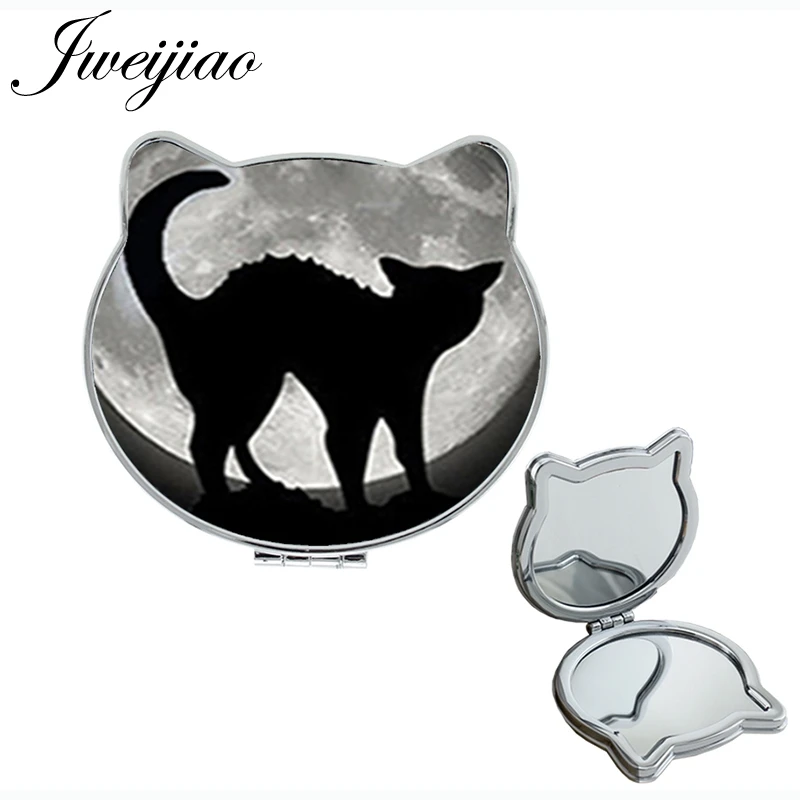 JWEIJIAO кошачий и лунный черный контур складные мини зеркала для макияжа милый фирменный дизайн женские компактные ручные зеркала для вечерние A251