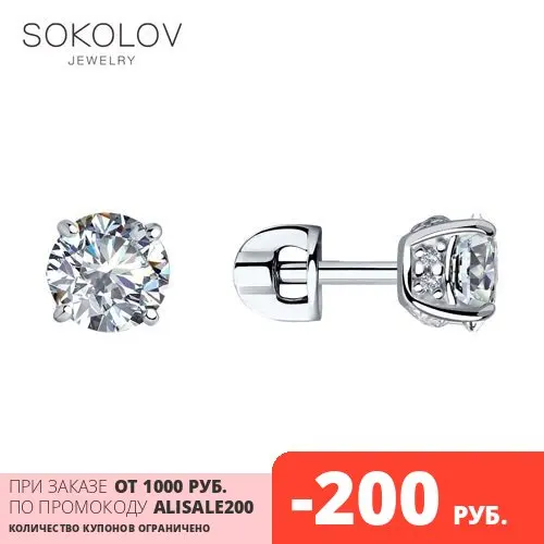 Женские серьги-пусеты SOKOLOV из серебра с фианитами, Серебро, 925,...
