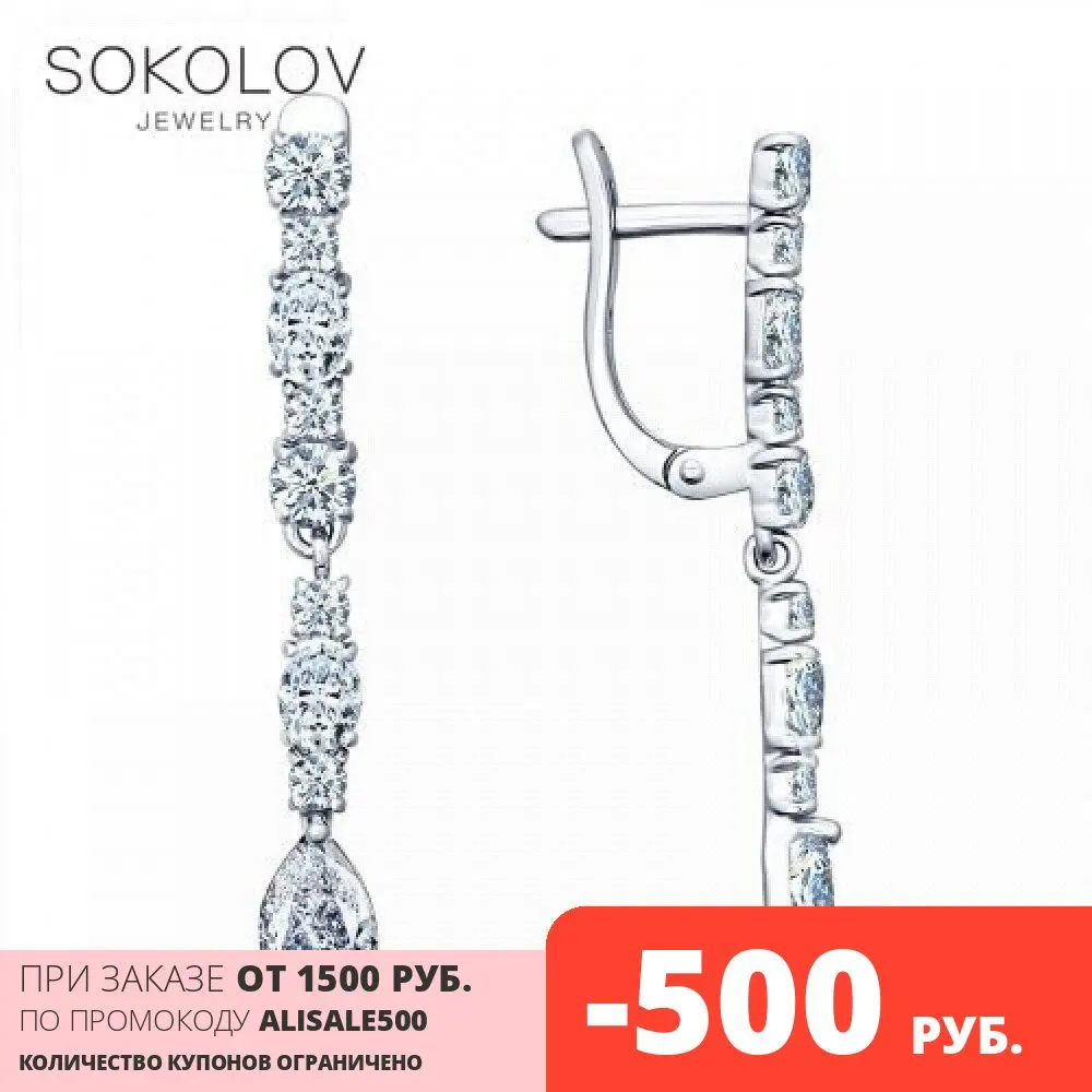 Серьги SOKOLOV из серебра с фианитами, Серебро, 925, Женские, Серьги 2022 тренд, Оригинальная продукция