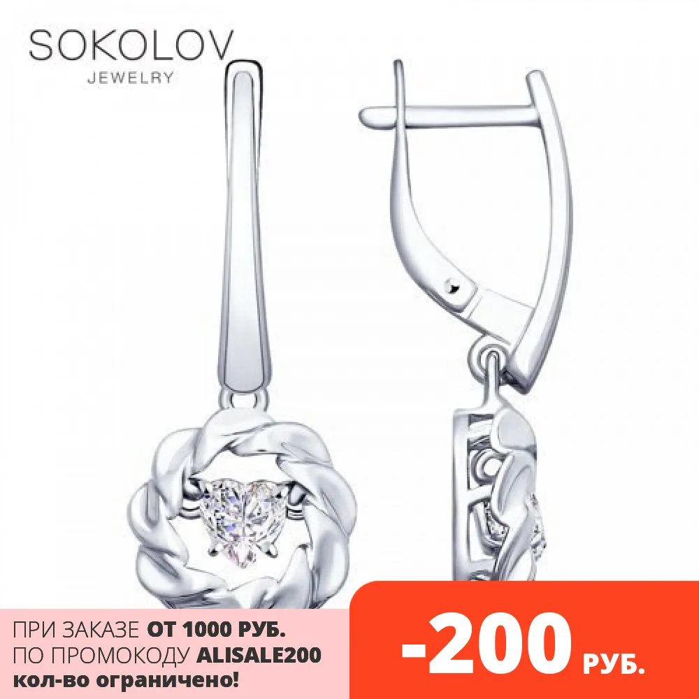 Серьги SOKOLOV из серебра с фианитами, Серебро, 925, Женские, Серьги 2021 тренд, Оригинальная продукция