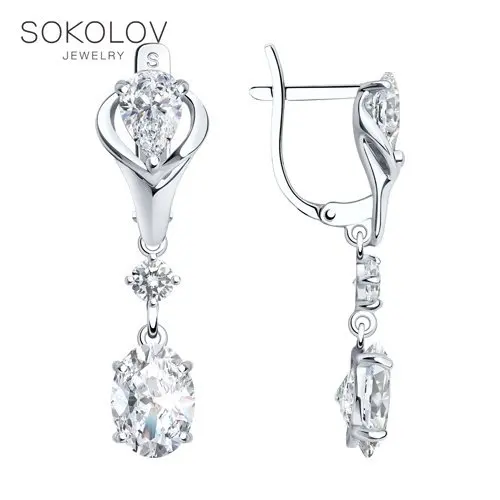 Серьги длинные SOKOLOV из серебра с фианитами, Серебро, 925, Женски...