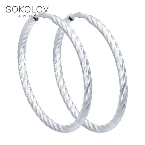 Серьги конго SOKOLOV из серебра с алмазной гранью, Серебро, 925, Женские, Серьги 2022 тренд, Оригинальная продукция