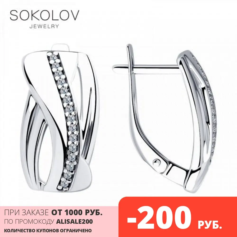Серьги SOKOLOV из серебра с фианитами, Серебро, 925, Женские, Серьги 2022 тренд, Оригинальная продукция