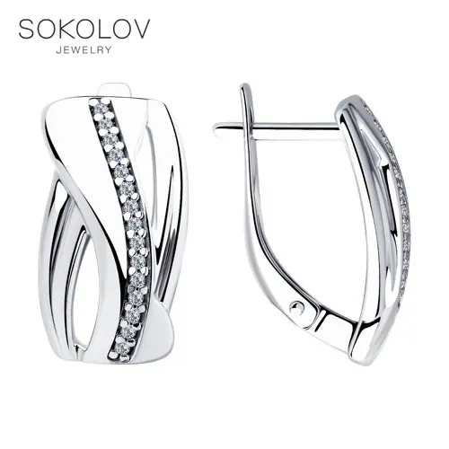 Серьги SOKOLOV из серебра с фианитами, Серебро, 925, Женские, Серьг...