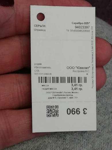 Серьга SKLV из серебра, 1 шт., Серебро, 925, Женская, Серьги 2021 т...
