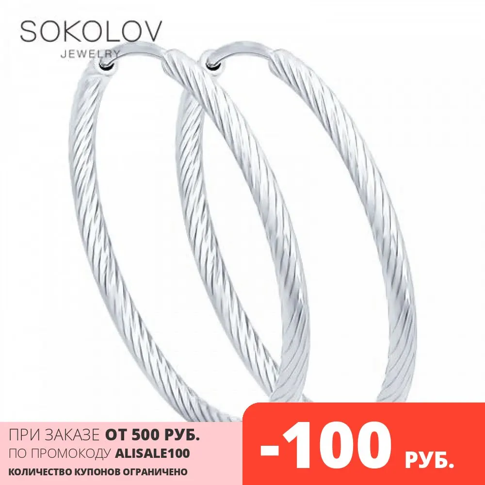 Серьги конго SOKOLOV из серебра с алмазной гранью, Серебро, 925, Женские, Серьги 2022 тренд, Оригинальная продукция