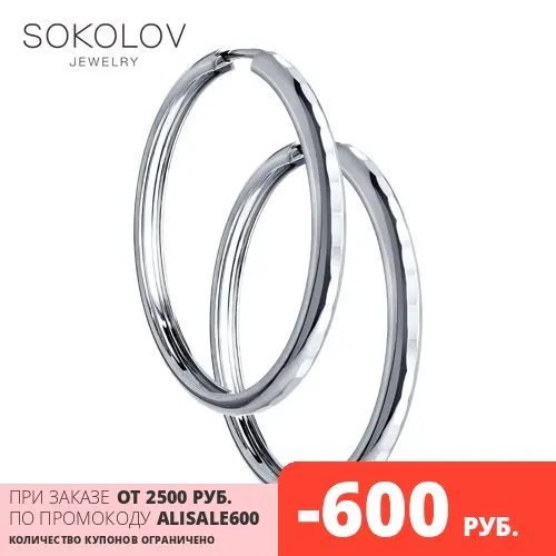 Серьги конго SOKOLOV из серебра с алмазной гранью, Серебро, 925, Женские, Серьги 2022 тренд, Оригинальная продукция