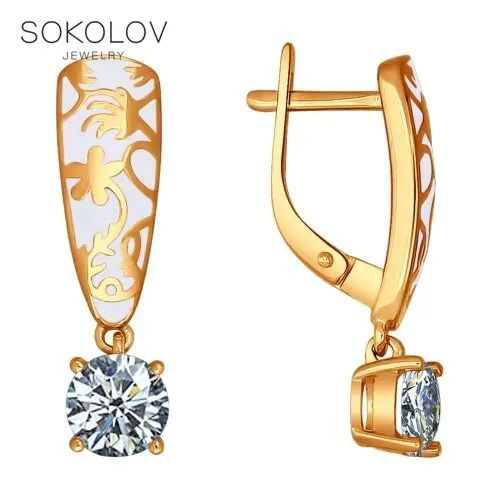 Позолоченные серьги с эмалью и фианитами SOKOLOV