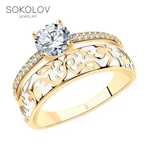 Позолоченное кольцо с эмалью и фианитам SOKOLOV, Серебро, 925, Женское, Оригинальная продукция