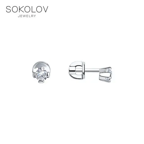 Серьги-пусеты SOKOLOV из серебра с фианитами, Серебро, 925, Женские...