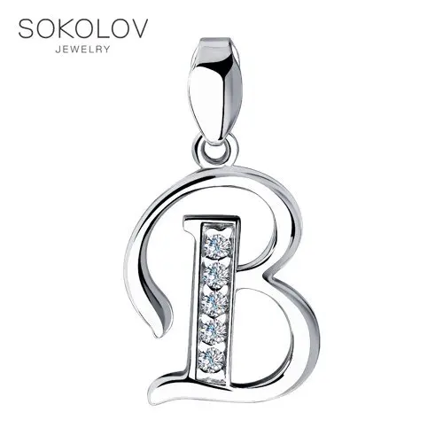 Подвеска-буква SOKOLOV из серебра с фианитами, Серебро, 925, Оригинальная продукция