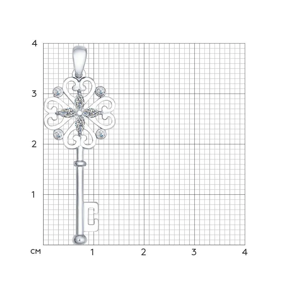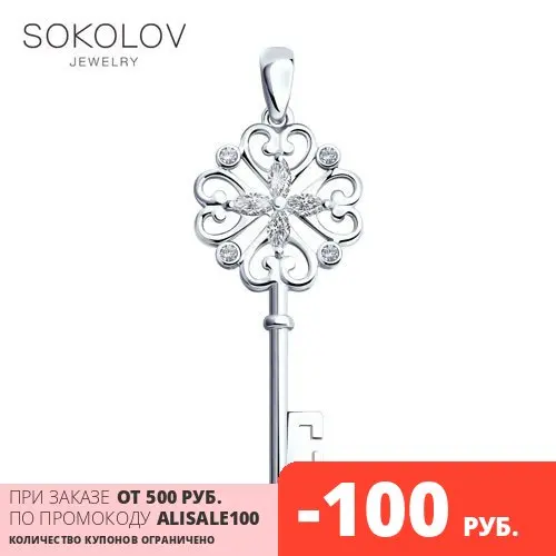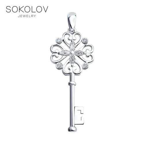 Подвеска «Ключ» SOKOLOV из серебраДизайнеры SOKOLOV отыскали заветный ключик к секрету красоты и привлекательности. Ажурная подвеска из серебра с фианитами поможет открывать любые сердца и вызывать искренние улыбки. Это ювелирное украшение точно станет одним из ваших самых любимых аксессуаров.