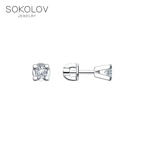 Женские серьги-пусеты SOKOLOV из серебра с фианитами, Серебро, 925,...