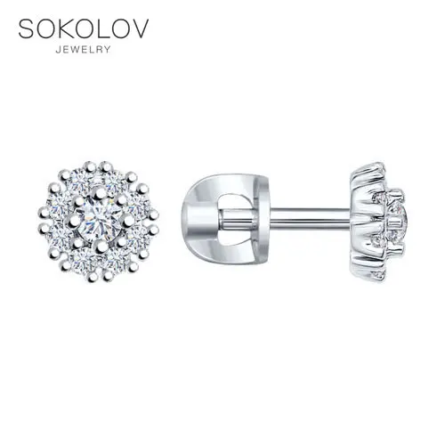 Серьги-пусеты SOKOLOV из серебра с фианитами, Серебро, 925, Женские...