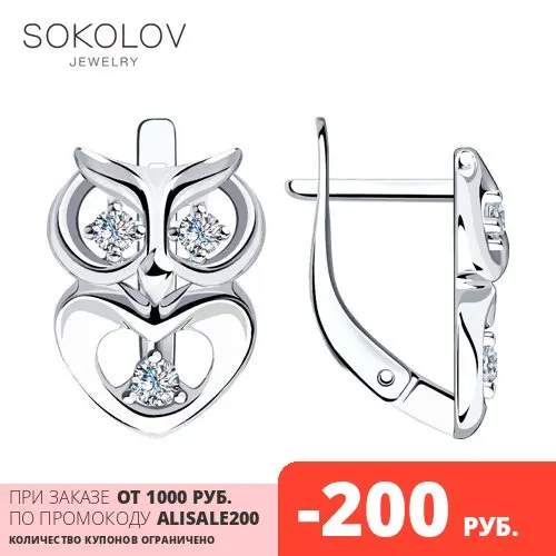 Серьги SOKOLOV из серебра с фианитами, Серебро, 925, Женские, Серьги 2022 тренд, Оригинальная продукция