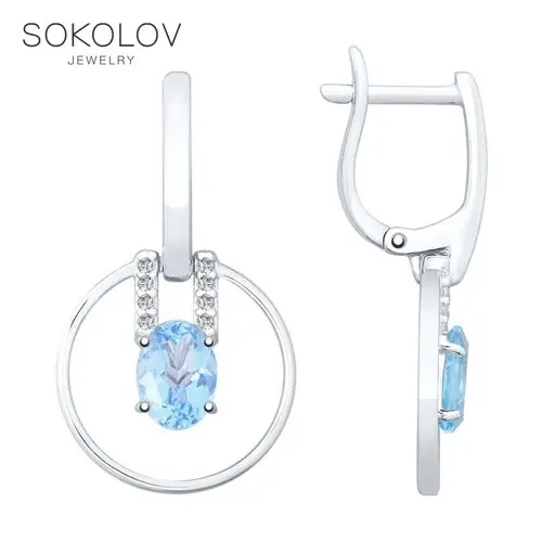 Серьги SOKOLOV из серебра с топазами и фианитами, Серебро, 925, Женские, Серьги 2022 тренд, Оригинальная продукция