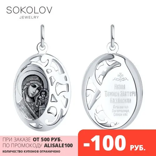 Иконка SOKOLOV из серебра с лазерной обработкой, Серебро, 925, Оригинальная продукция