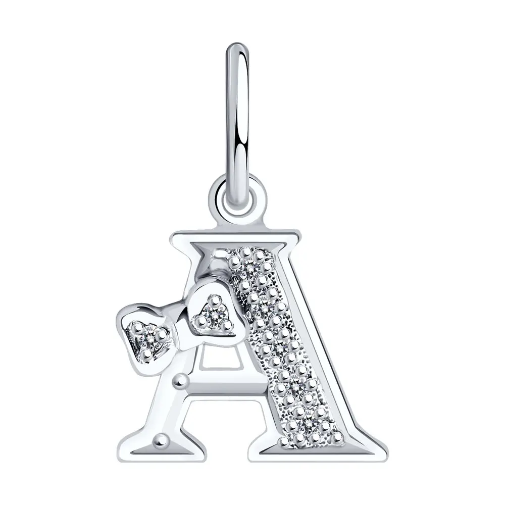 Серебряная подвеска-буква «А» SOKOLOVС первой буквы алфавита начинается множество прекрасных имен — как женских, так и мужских. Поэтому серебряная подвеска в виде буквы «А», украшенная фианитами, может стать и символом собственного имени, и постоянным напоминанием о дорогом человеке.