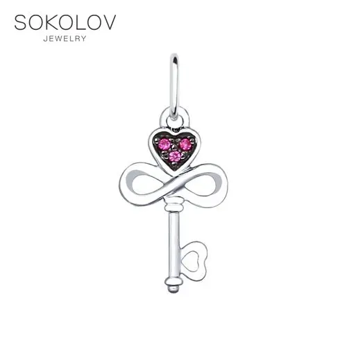 Подвеска Ключик с красными фианитами SOKOLOV, Серебро, 925, Оригинальная продукция