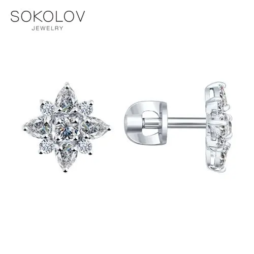 Серьги SOKOLOV из серебра с фианитами, Серебро, 925, Женские, Серьг...