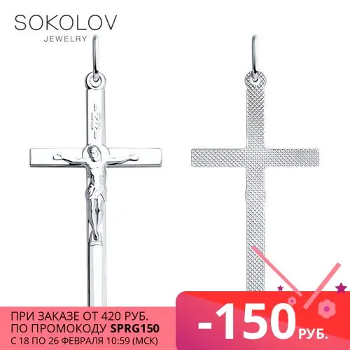 Католический крест SOKOLOV из серебра, Серебро, 925, Оригинальная продукция
