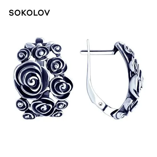 Серьги SOKOLOV из чернёного серебра, Серебро, 925, Женские, Серьги 2022 тренд, Оригинальная продукция