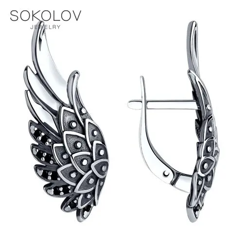 Серьги Крылья SOKOLOV из серебра с чернением, Серебро, 925, Женские, Серьги 2022 тренд, Оригинальная продукция