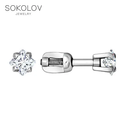 Женские серьги-пусеты SOKOLOV из серебра с фианитами, Серебро, 925,...