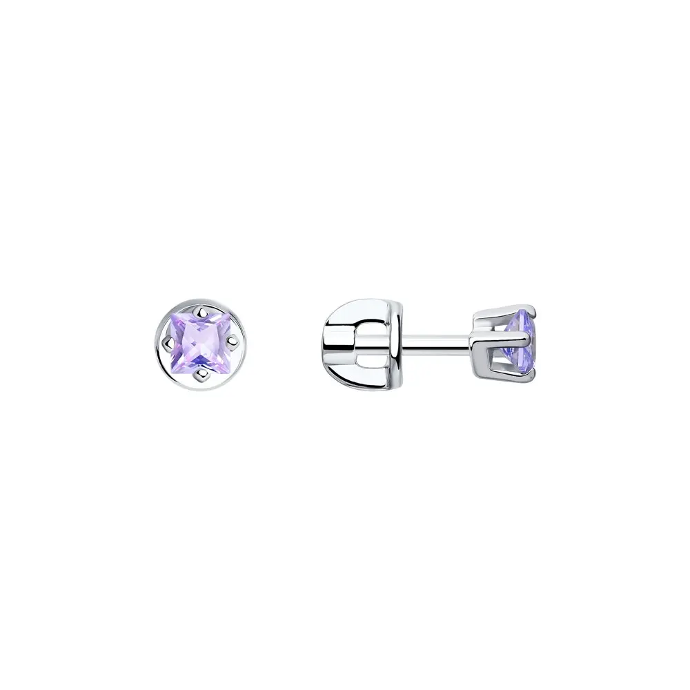 Серьги-пусеты SOKOLOV из серебра с сиреневыми фианитами, Серебро, 925, Женские, Детские, Серьги 2022 тренд