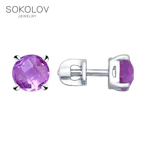 Серьги-пусеты SOKOLOV из серебра с аметистами, Серебро, 925, Женские, Серьги 2022 тренд, Оригинальная продукция