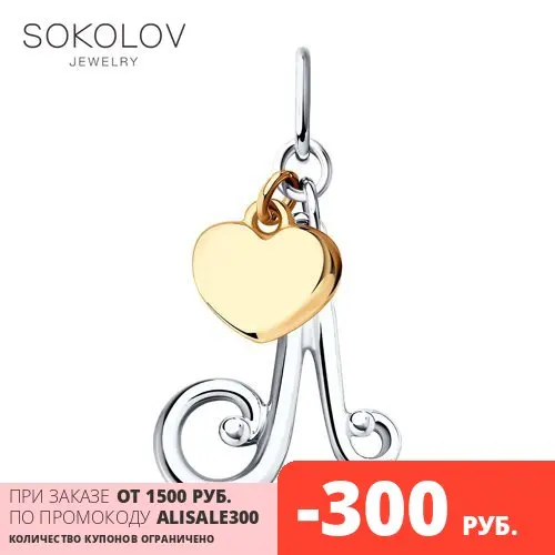 Подвеска-буква Л SOKOLOV из серебра, Серебро, 925, Оригинальная продукция
