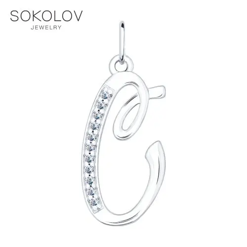 Кулон буква С SOKOLOV, Серебро, 925, Оригинальная продукция