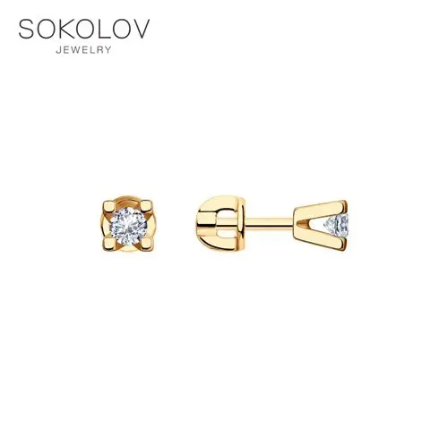 Серьги-пусеты SOKOLOV из золочёного серебра с фианитами, Серебро, 925, Женские, Серьги 2022 тренд, Оригинальная продукция