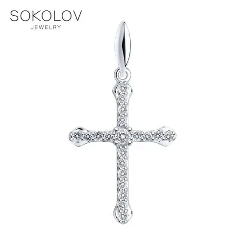 Крест SOKOLOV из серебра с фианитами, Серебро, 925, Оригинальная продукция