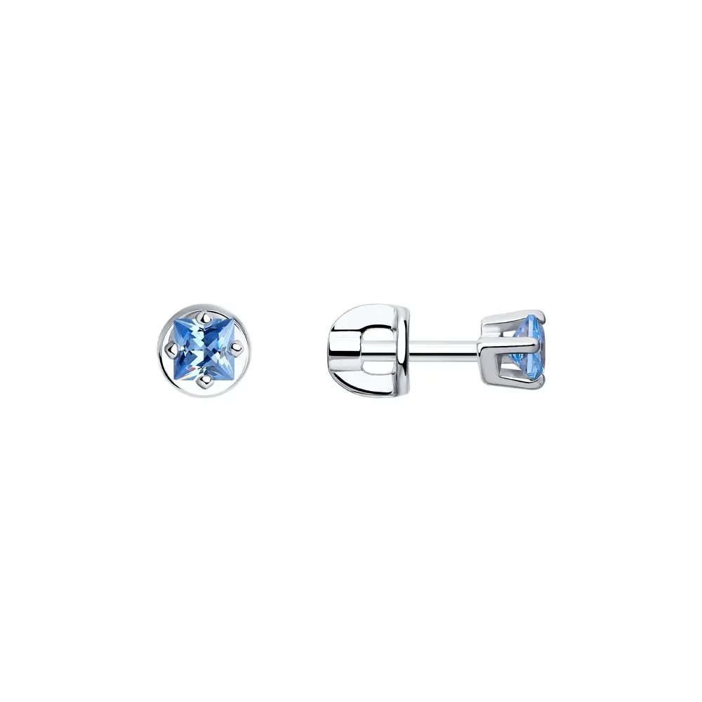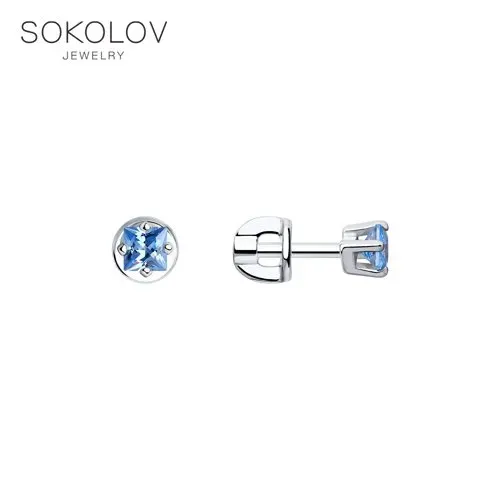 Серьги-пусеты SOKOLOV из серебра с голубыми фианитами, Серебро, 925, Женские, Детские, Серьги 2022 тренд, Оригинальная продукция