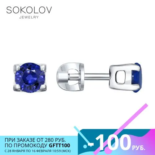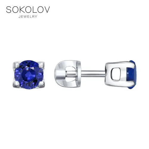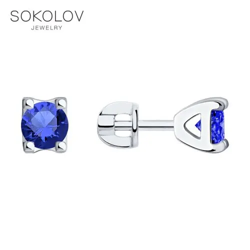 Серьги-пусеты SOKOLOV из серебра с синими фианитами, Серебро, 925, Женские, Серьги 2022 тренд, Оригинальная продукция