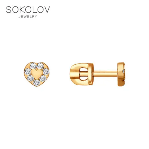 Серьги SOKOLOV из золота с фианитами, Золото, 585, Детские, Серьги ...