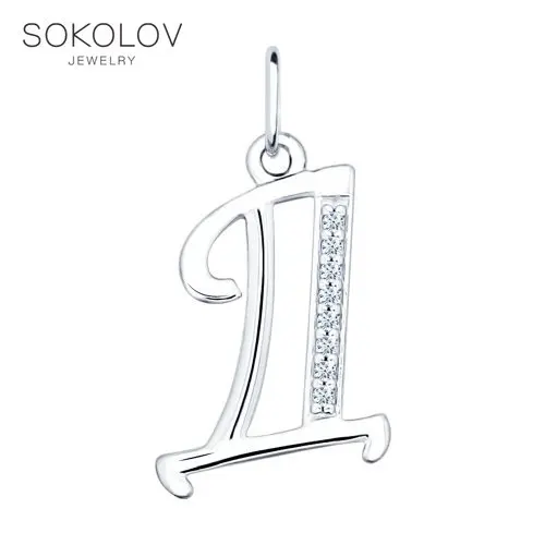 Кулон буква Д SOKOLOV, Серебро, 925, Оригинальная продукция